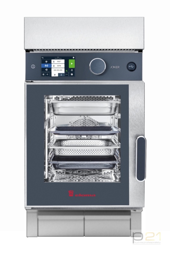 Piec konwekcyjno-parowy Joker ST 6x GN1/1, sterowanie górne, drzwi lewe, wersja mobilna, okap kondensacyjny, Eloma